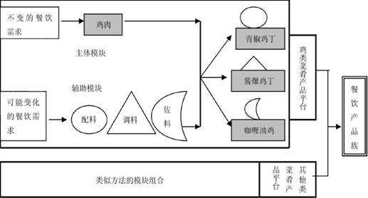 ? ? ? ?其次,將中式菜點進行系統(tǒng)的分析,并在分析的基礎(chǔ)上,把大批量定制或模塊化生產(chǎn)原理運用到產(chǎn)品的整體設(shè)計與制作過程,即將產(chǎn)品的各個部件形成標(biāo)準化生產(chǎn)模塊,以不同的標(biāo)準化生產(chǎn)模塊的組合和信息編程形成新的產(chǎn)品。